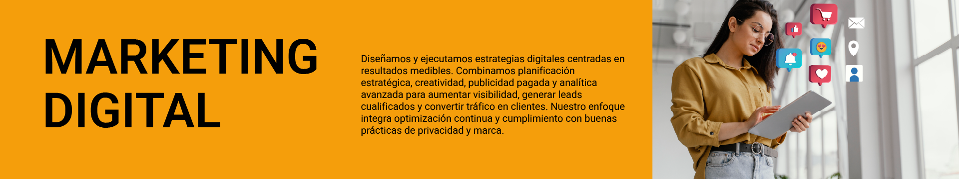 Nuestro enfoque es brindar un servicio de calidad y excelencia: nos tomamos el tiempo de conocer a fondo la visión, la marca y las necesidades de cada cliente para diseñar estrategias que los lleven a un nuevo nivel.